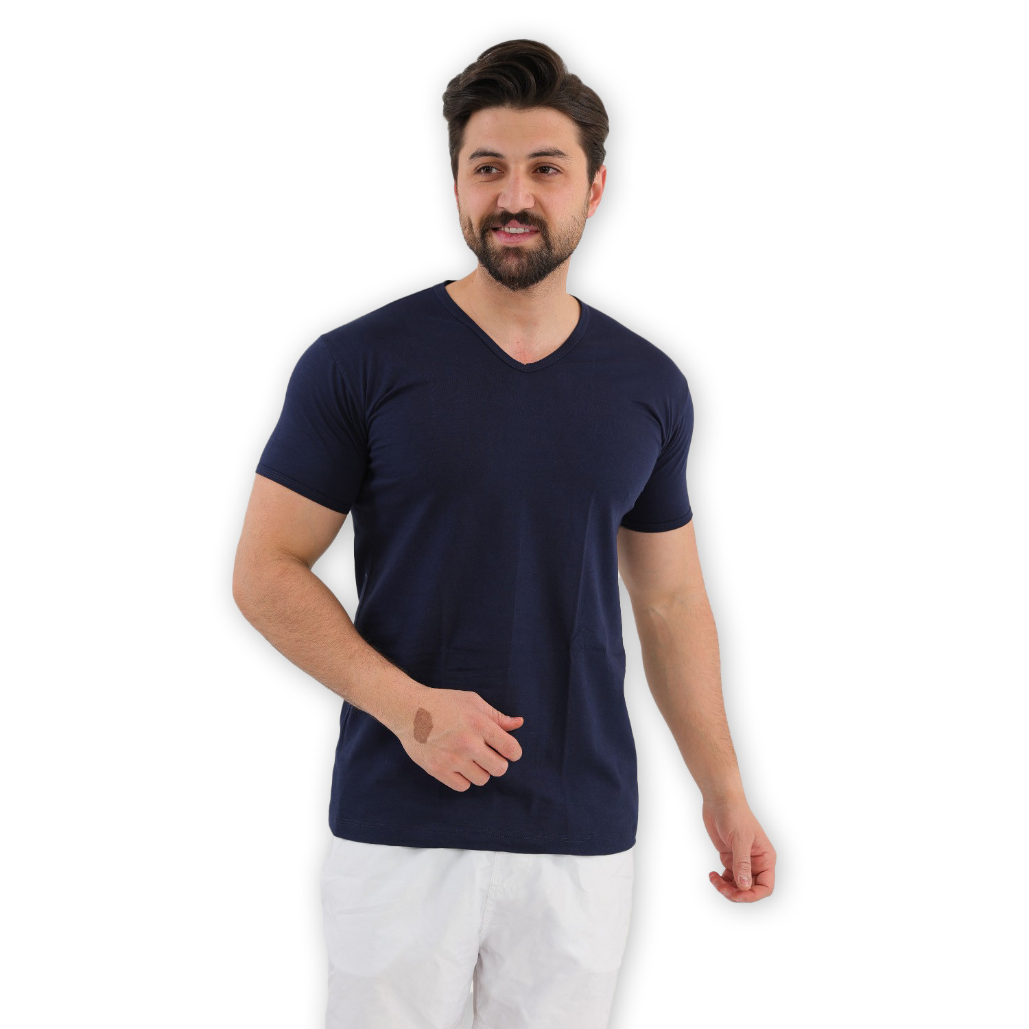 فانيلة نصف كم ياقة سبعة قطن رجالي من دلعين – أناقة وراحة لكل يوم