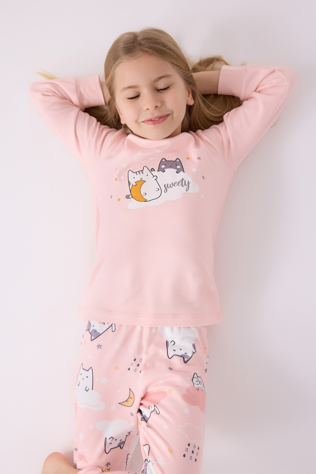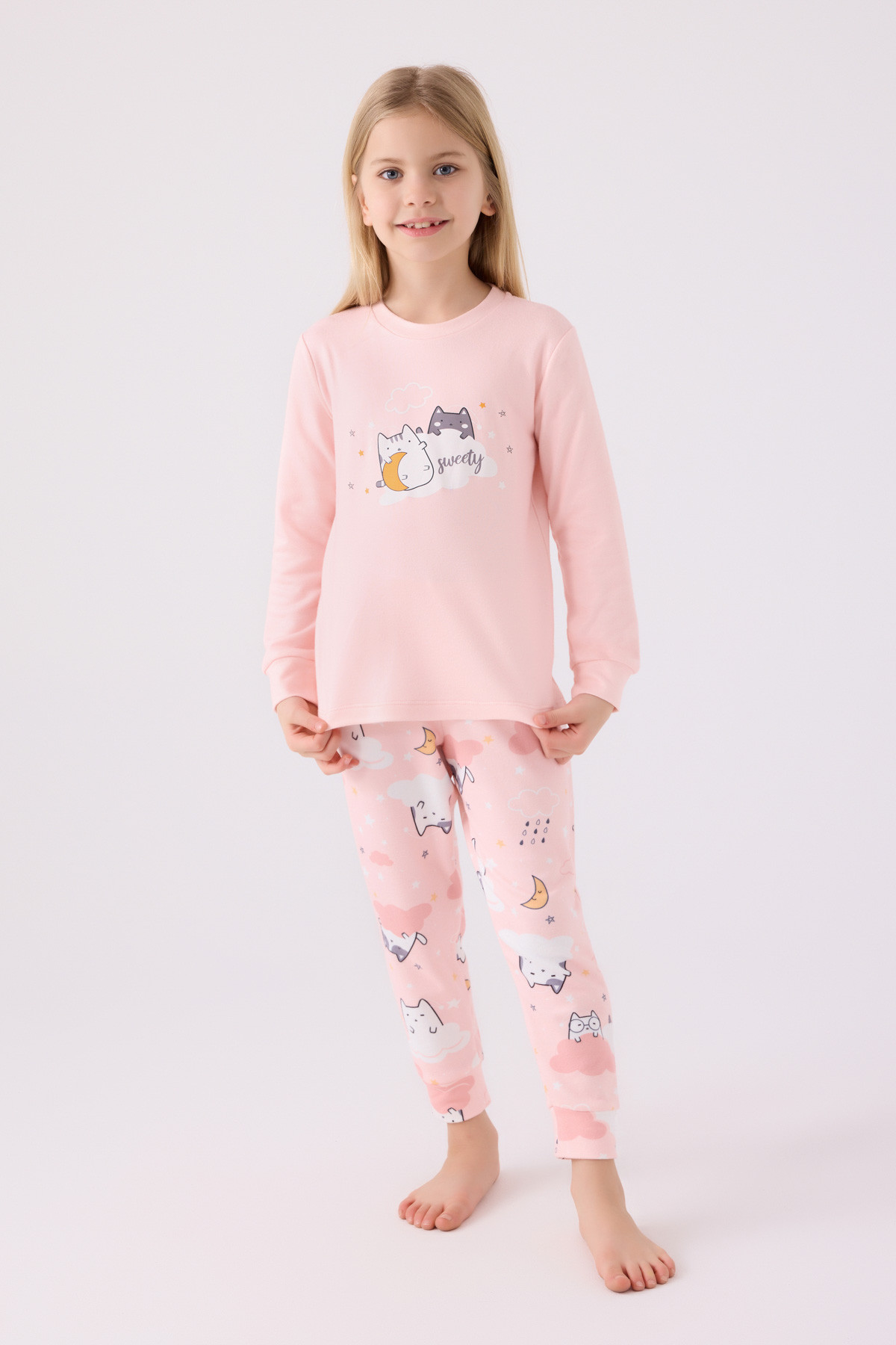 طقم بجامة كم طويل بناتي