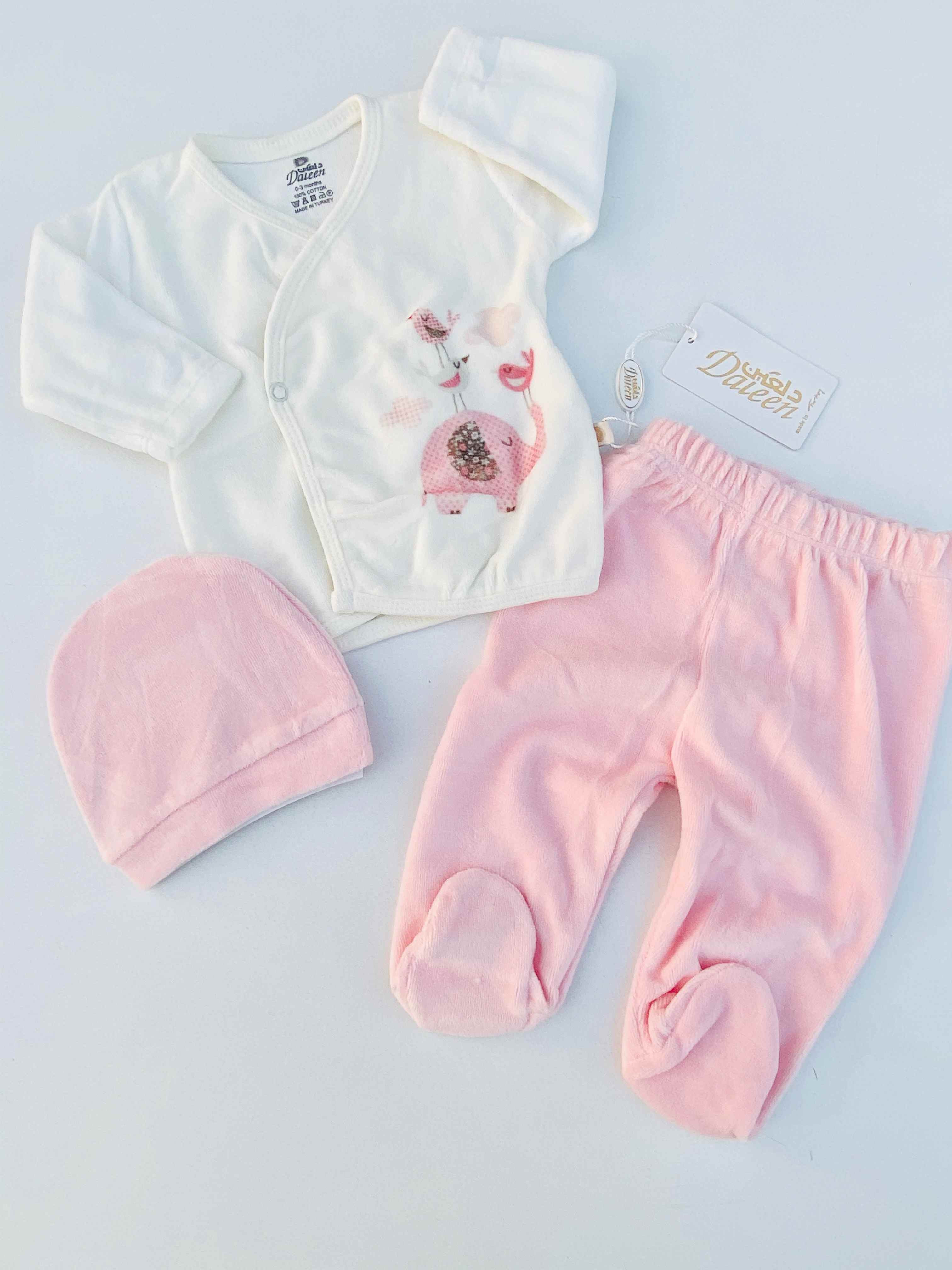 طقم 3 قطع بيبي بناتي قديفه شكل فيل لون وردي Daleen 10810